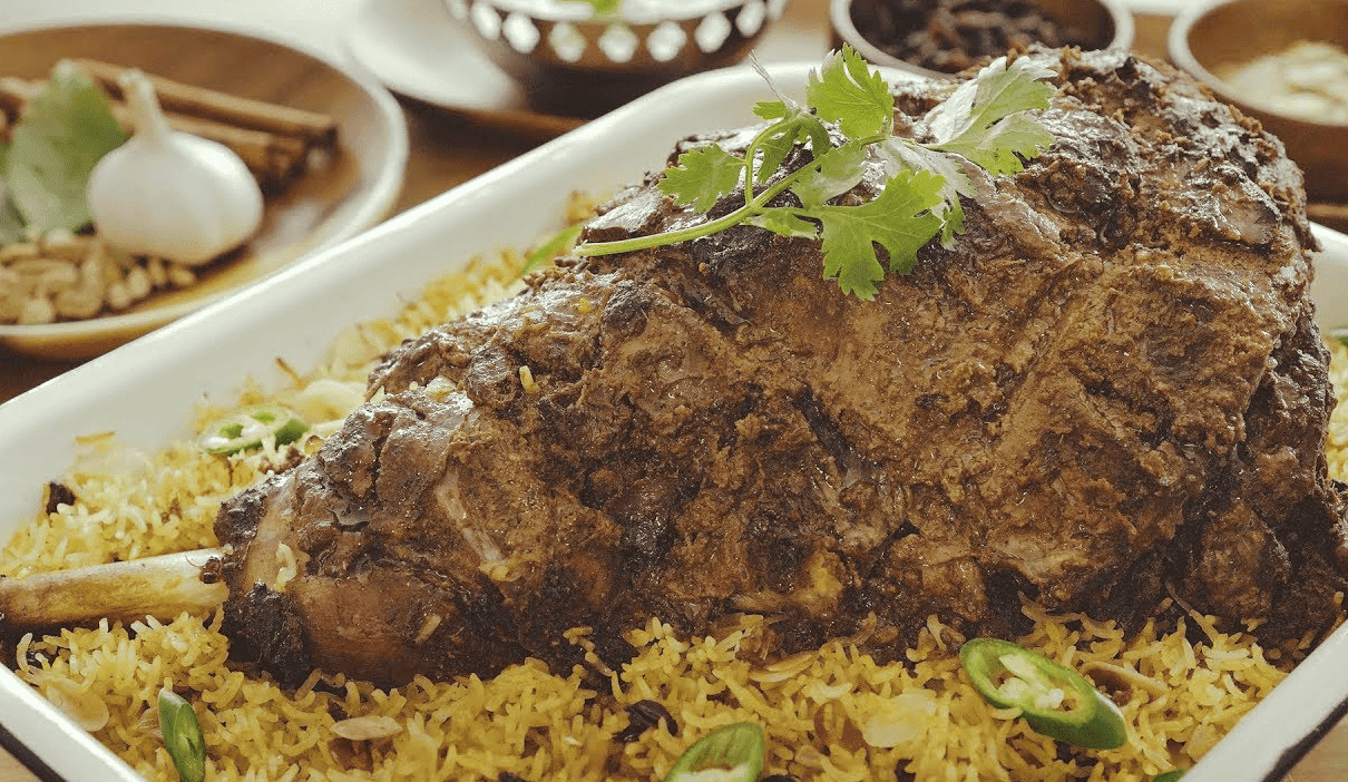 A good portion of Mutton slow roasted and served with thick dense Arabic rice, more like a Mandi. This should serve more than one.